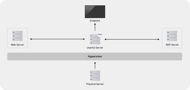 In today’s enterprise landscape, optimizing your infrastructure is key. The Userful Infinity Platform supports direct deployment on hypervisors such as Hyper-V, VMware, and Proxmox, enabling organizations to consolidate AV and IT systems on a single platform.